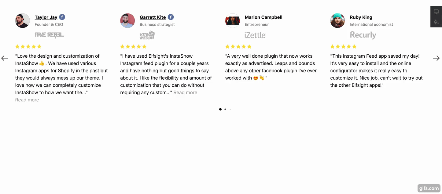 Elfsight’s testimonial plugin allows you to choose from a selection of styles. Pretty impressive for a free plugin!