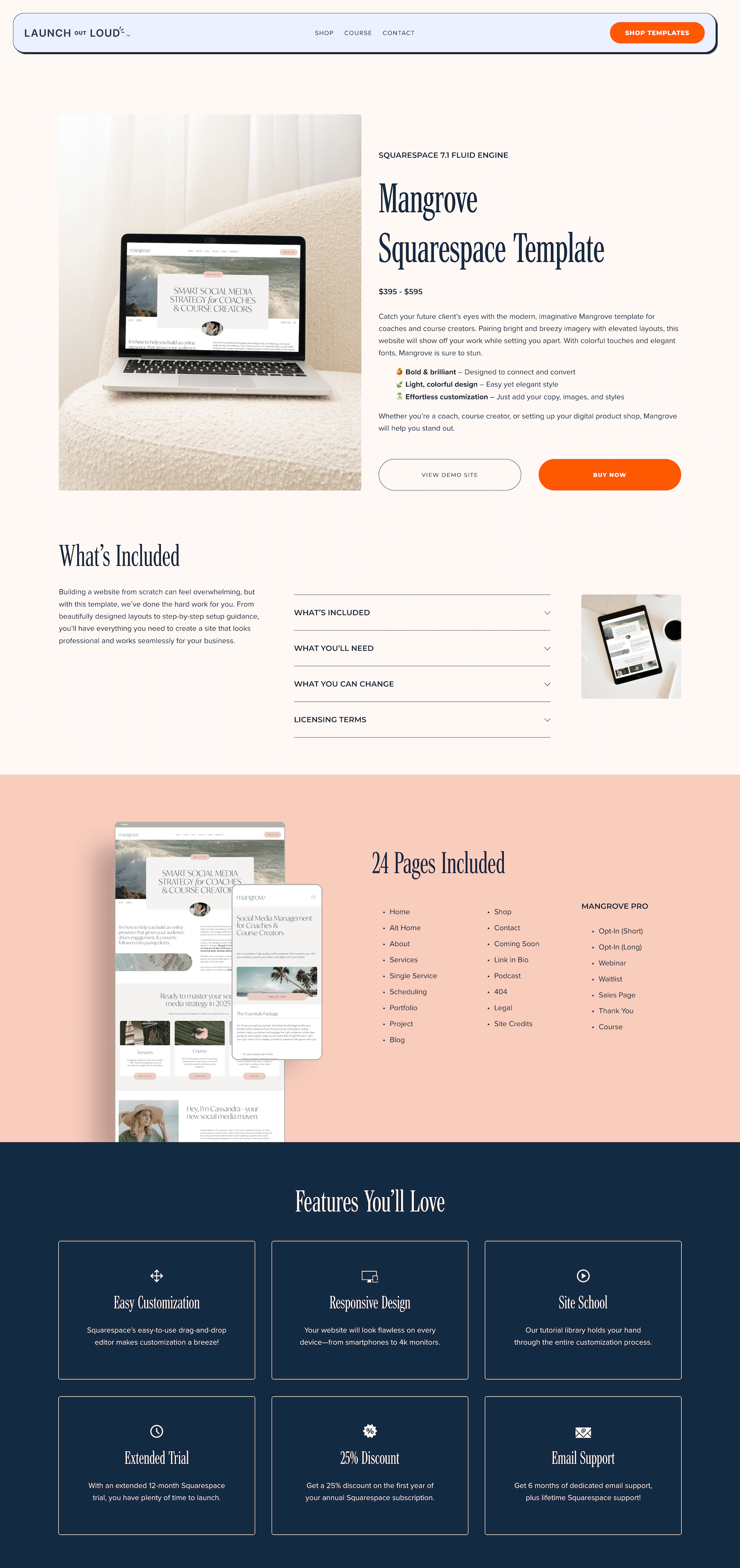 Template Shop in a Box is a Squarespace website template designed specifically for Squarespace designers—whether you’re launching a new template shop, revamping your portfolio, or finally creating a website for your business. It cannot be resold or used to build client websites.