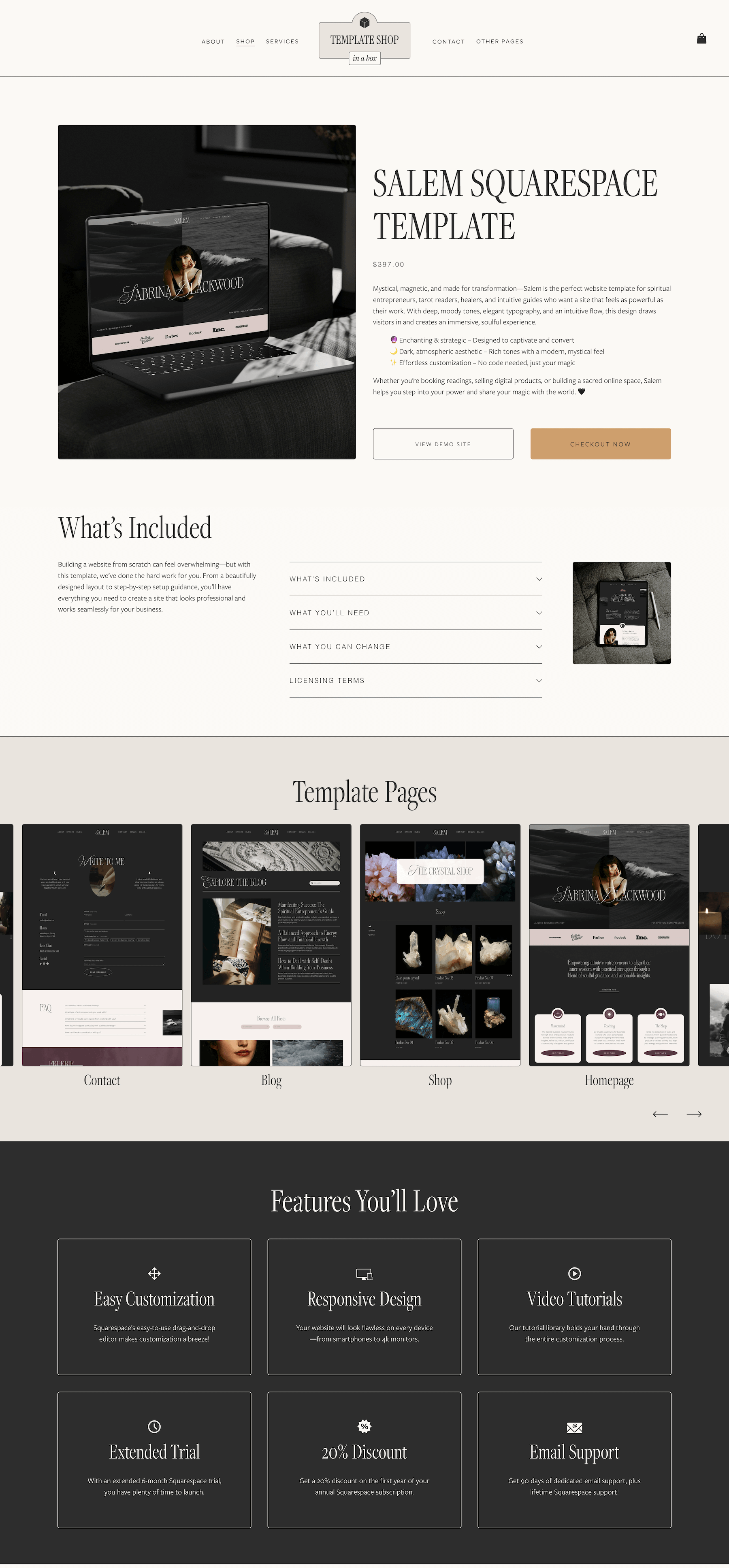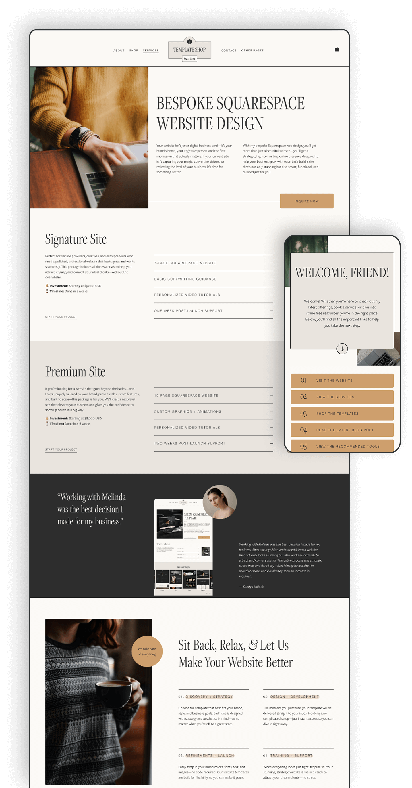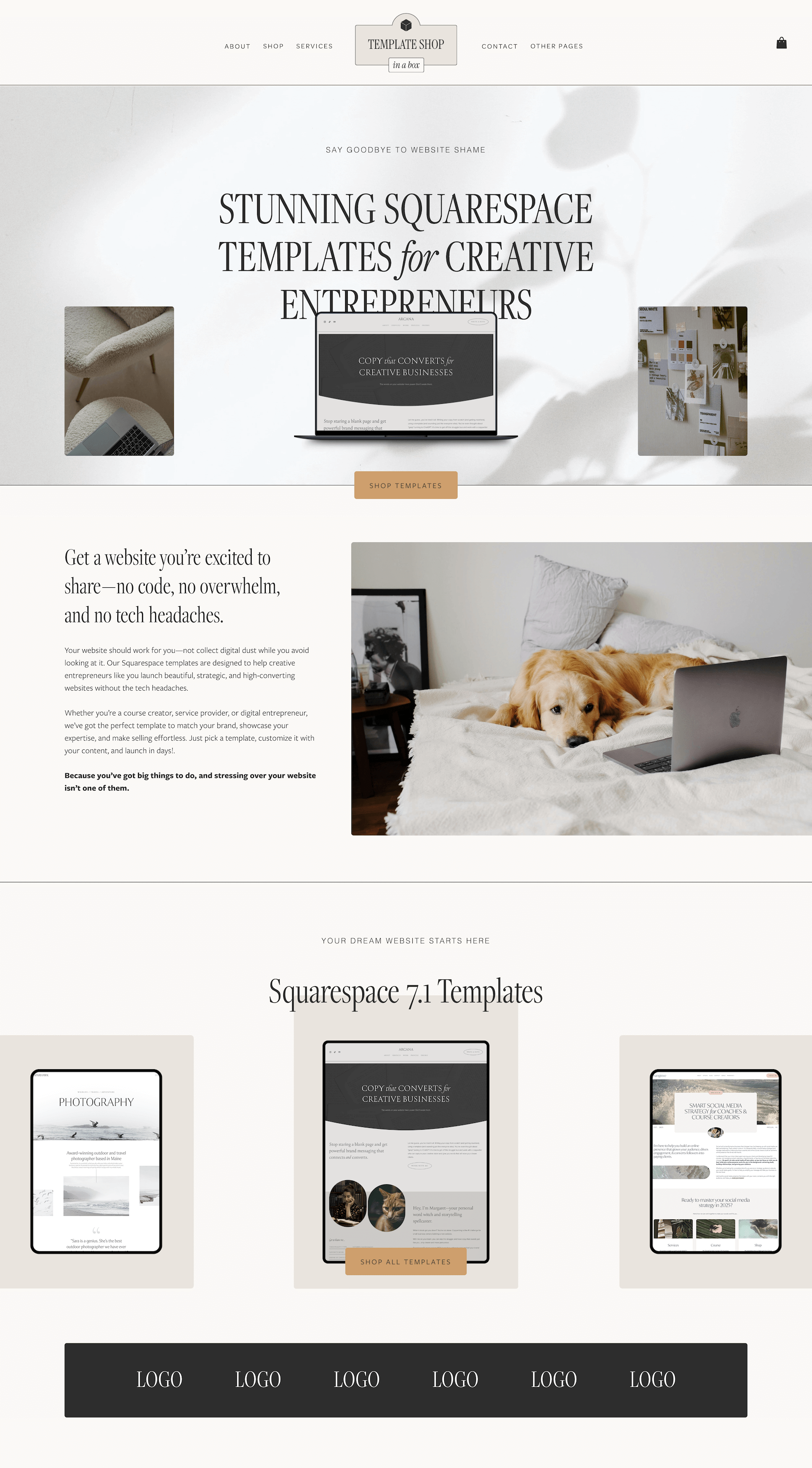 That’s where Template Shop in a Box comes in. This done-for-you, fully customizable Squarespace template includes everything you need to launch your own website faster + easier—whether you’re: